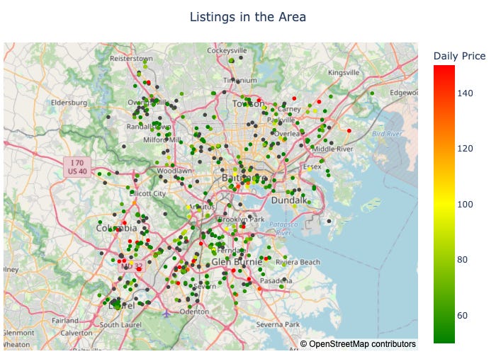 By analyzing this map, hosts can identify competitive pricing in their area and adjust their rates accordingly to attract more renters.