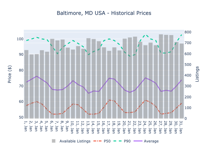 Hosts should consider these trends when setting their rental prices. By monitoring daily changes in P50 and P90, they can better position their listings to attract renters while maximizing earnings. Additionally, understanding peak rental days can help hosts optimize their availability and pricing strategies.