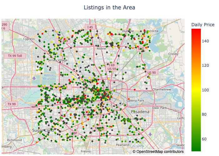 Data covers listings 15 miles around Houston, TX USA
