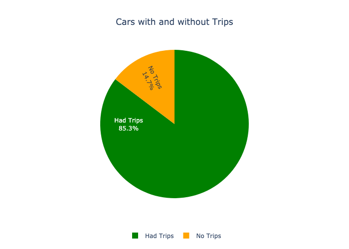 The data reveals a significant disparity in rental activity among Turo listings. Out of a total of 11,415 cars, 9,739 have successfully completed trips, indicating a robust demand for certain vehicles. However, 1,676 cars remain unrented, highlighting that not all listings attract interest. This suggests that hosts should carefully consider their vehicle choices and listing strategies to enhance visibility and appeal.
